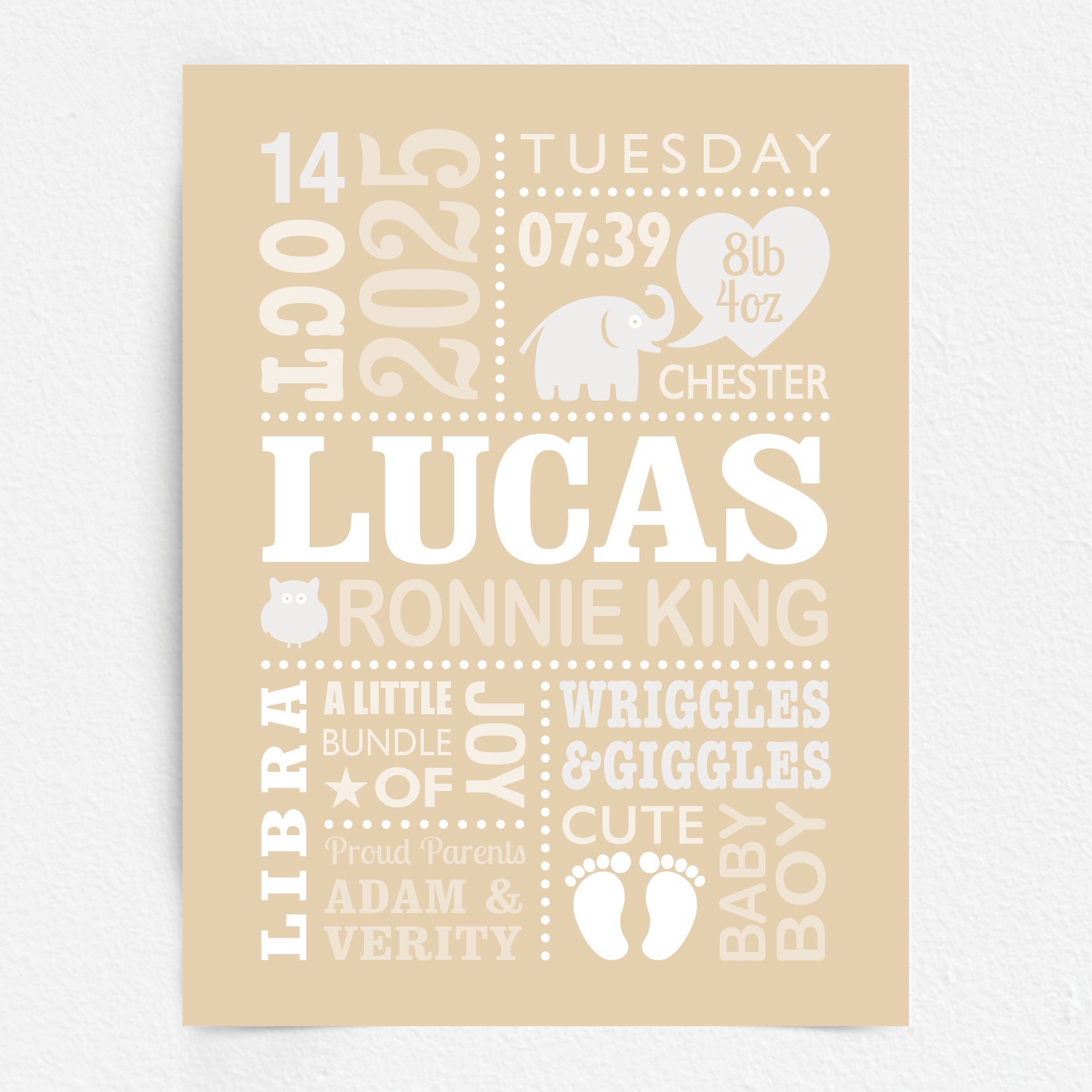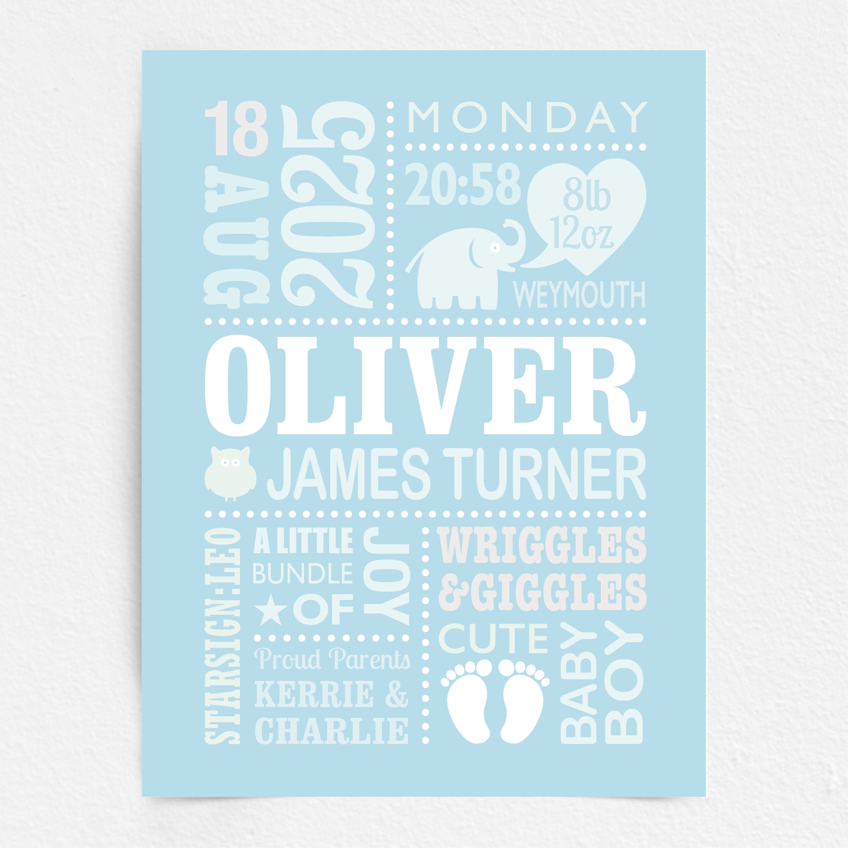 Custom Baby Print - Boy Cute Elephant